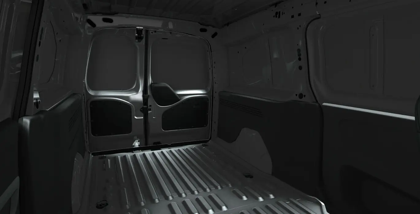 • Puertas traseras dobles metálicas disimétricas 1/3 (derecha) - 2/3 (izquierda), con apertura de 180° y cerradura